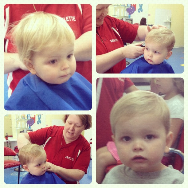 - We celebrated 22 months by getting Owen's first haircut. He tried so hard to be brave for mama and dada, but a few crocodile tears slipped. So long baby curls, hello toddler!